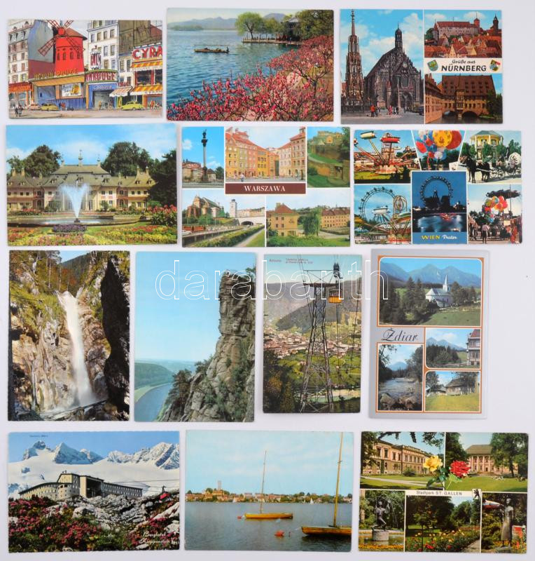 150 db MODERN külföldi városképes lap, benne néhány nagyobb méretű képeslap, vegyes minőségű / 150 modern foreign postcards, including some big size postcards, mixed quality