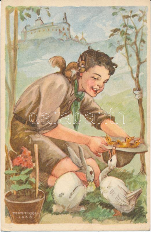 Beschreibung: "A cserkész szereti a természetet, jó az állatokhoz..." Cserkész lebelezőlapok kiadóhivatala / scout s: Márton L. (EK)