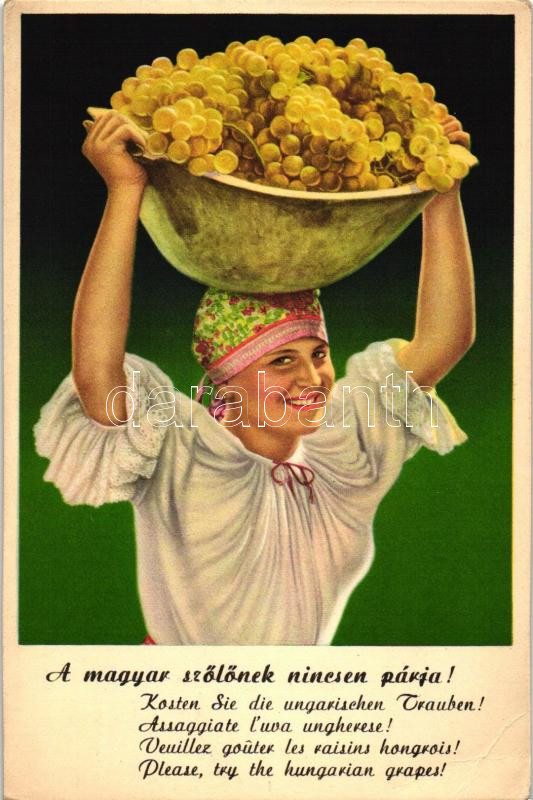 A magyar szőlőnek nincsen párja / Hungarian wine campaign (EB) https://www.darabanth.com/de/236-Fernauktion/236.0/Ansichtskarten/Propaganda~117/A-magyar-szolonek-nincsen-parja-Hungarian-wine-campaign-EB~II1083528