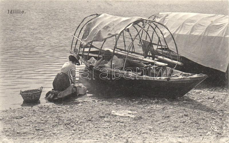 Beschreibung: Idillio / Italian boat, clothing washing lady