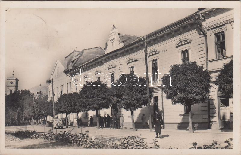 Nagykároly, városháza, csendőr / town hall, gendarme, automobile https://www.darabanth.com/de/236-Fernauktion/236.0/Ansichtskarten/Siebenburgen~33/Nagykaroly-varoshaza-csendor-town-hall-gendarme-automobile~II1080871