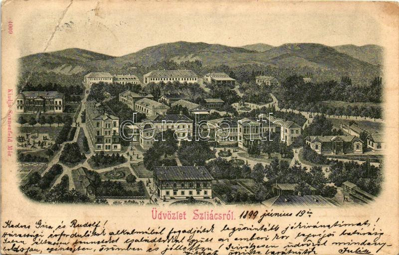 Beschreibung: 1899 Szliács, kiadja Sonnenfeld Mór (fa)