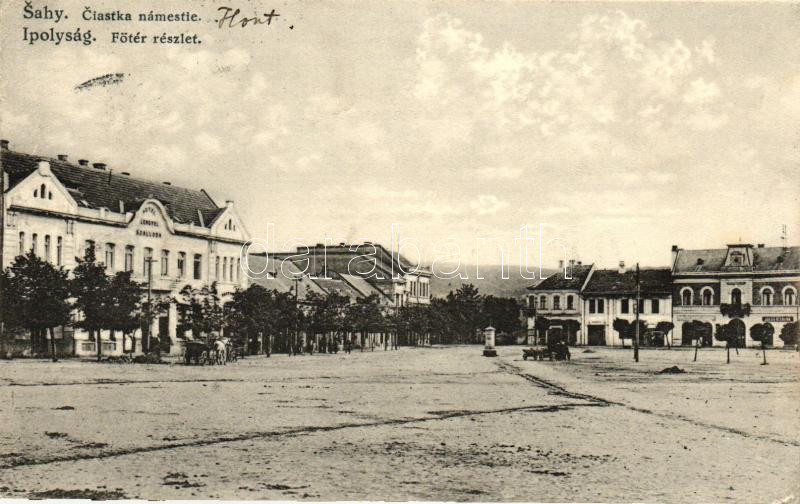 Ipolyság, Főtér, Lengyel szálloda / Main square, hotel (EK) https://www.darabanth.com/de/236-Fernauktion/236.0/Ansichtskarten/Slowakei~35/Ipolysag-Foter-Lengyel-szalloda-Main-square-hotel-EK~II1080074