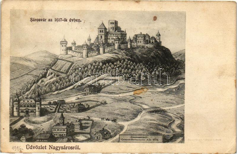 Nagysáros, vár 1617-ben, Divald Károly fia / castle anno (EK) https://www.darabanth.com/de/236-Fernauktion/236.0/Ansichtskarten/Slowakei~35/Nagysaros-var-1617-ben-Divald-Karoly-fia--castle-anno-EK~II1081424