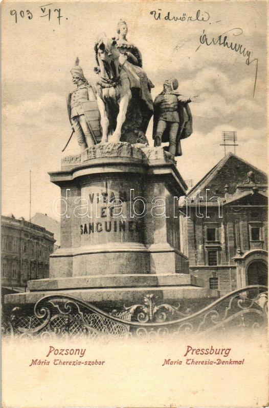 Pozsony, Mária Terézia szobor / statue (EK) https://www.darabanth.com/de/236-Fernauktion/236.0/Ansichtskarten/Slowakei~35/Pozsony-Maria-Terezia-szobor-statue-EK~II1081378