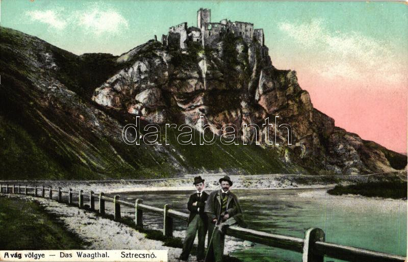 Beschreibung: Sztrecsnó, Sztrecsény; Vág völgye, vár; Gansel Lipót / valley, castle