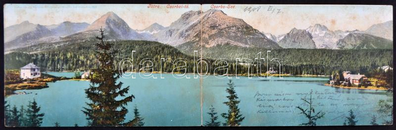 Tátra, Csorba-tó / lake, panoramacard (wet damage) https://www.darabanth.com/de/236-Fernauktion/236.0/Ansichtskarten/Slowakei~35/Tatra-Csorba-to-lake-panoramacard-wet-damage~II1080540