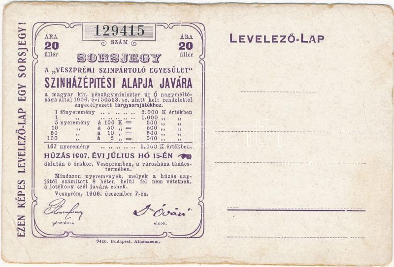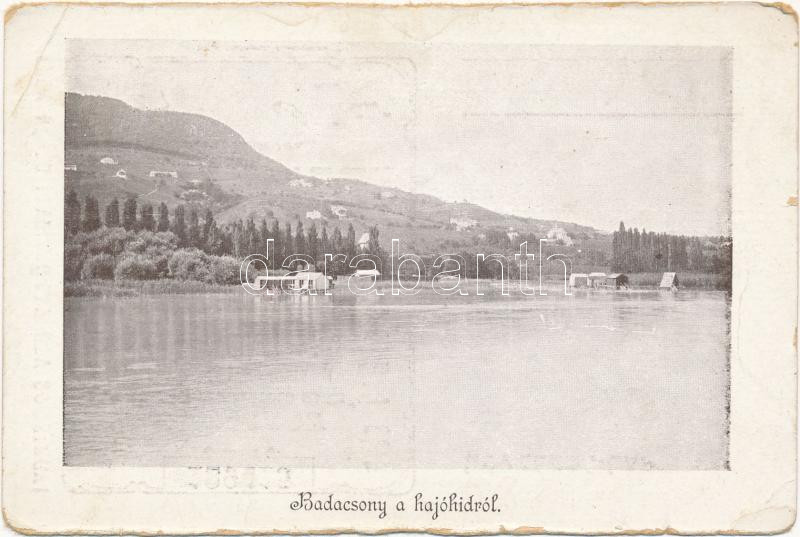Beschreibung: Badacsony a hajóhídról, hátoldalon sorsjegy a "Veszprémi színpártoló egyesület" színházépítési alapja javára (EB)