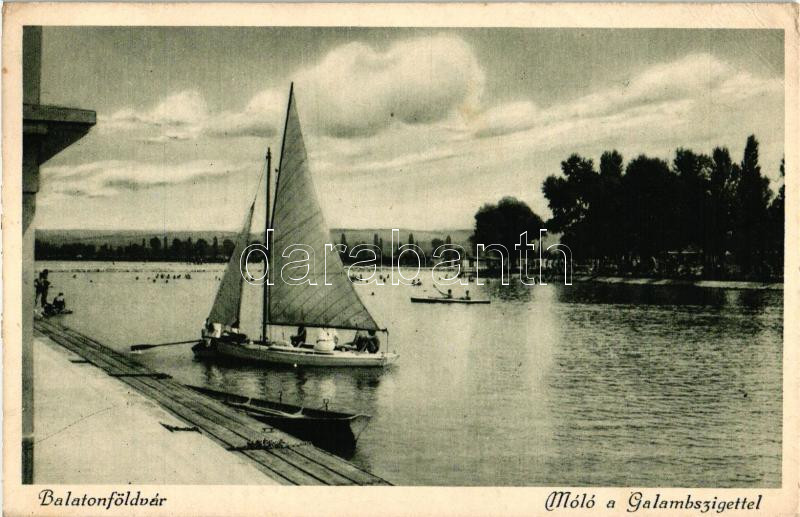 Balatonföldvár, Móló, Galambsziget, vitorlás (EK) https://www.darabanth.com/de/236-Fernauktion/236.0/Ansichtskarten/Ungarn~32/Balatonfoldvar-Molo-Galambsziget-vitorlas-EK~II1080327