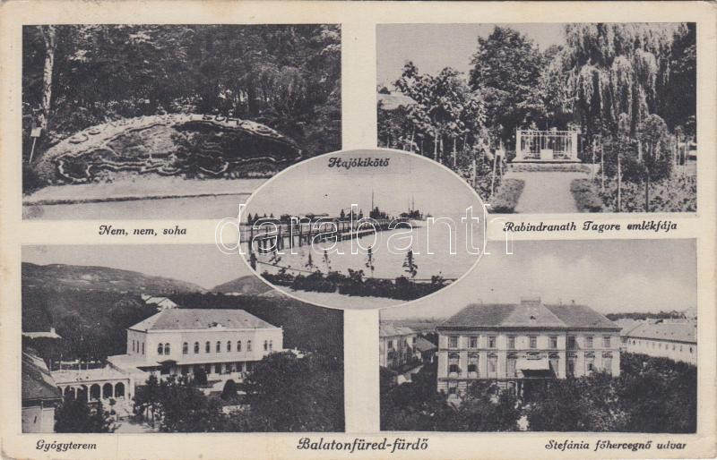 Beschreibung: Balatonfüred-fürdő, Nem nem soha irredenta emlék, Rabindranath Tagore emlékfája, hajó kikötő, gyógyterem, Stefánia főhercegnő udvar (EK)