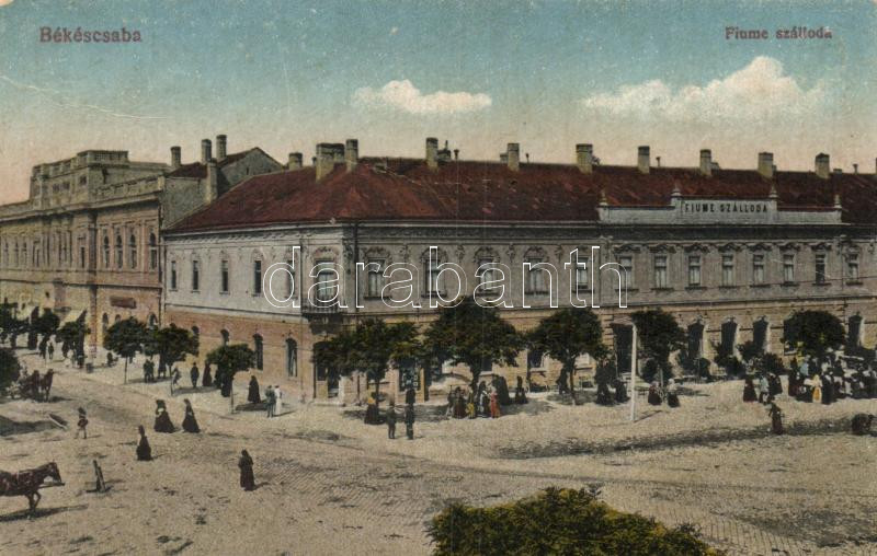 Békéscsaba, Főtér, Fiume szálloda (EK) https://www.darabanth.com/de/236-Fernauktion/236.0/Ansichtskarten/Ungarn~32/Bekescsaba-Foter-Fiume-szalloda-EK~II1064129