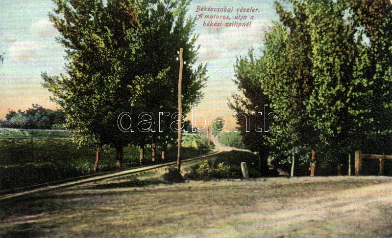 Békéscsaba, a motoros útja a békési zsiliphez, vasút https://www.darabanth.com/de/236-Fernauktion/236.0/Ansichtskarten/Ungarn~32/Bekescsaba-a-motoros-utja-a-bekesi-zsiliphez-vasut~II1064136