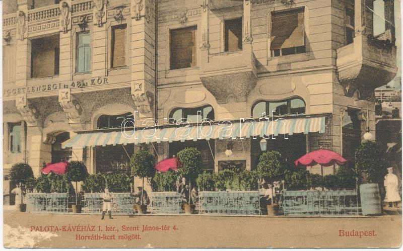 Beschreibung: Budapest I. Palota kávéház, Függetlenségi és 48-as kör épülete; Szent János tér 4. a Horváth kert mögött; Hollänzer és Okos műterméből (EB)