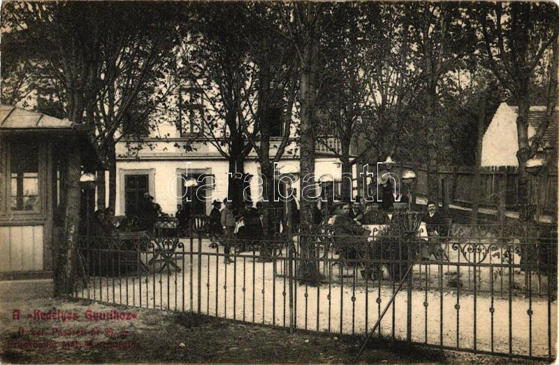 Beschreibung: Budapest II. Pasarét, Bruckbauer Mátyás "Kedélyes Gyurihoz" nevű vendéglője (EK)