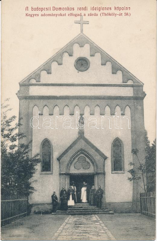 Budapest XIV. Szent Domonkos rendi ideiglenes kápolna; Thököly út 58 https://www.darabanth.com/de/236-Fernauktion/236.0/Ansichtskarten/Ungarn~32/Budapest-XIV-Szent-Domonkos-rendi-ideiglenes-kapolna-Thokoly-ut-58~II1087856