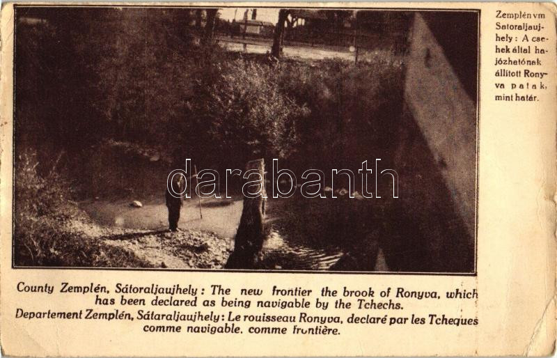 Beschreibung: Sátoraljaújhely, Csehek által hajózhatónak állított Ronyva patak, mint határ; Magyar Nemzeti Szövetség kiadása (EB)
