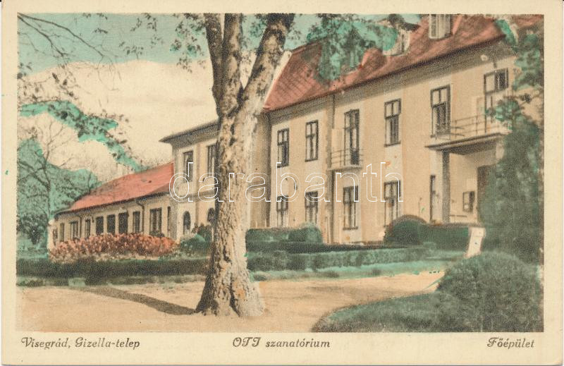 Visegrád, Gizella telep, OTI szanatórium, főépület https://www.darabanth.com/de/236-Fernauktion/236.0/Ansichtskarten/Ungarn~32/Visegrad-Gizella-telep-OTI-szanatorium-foepulet~II1087006