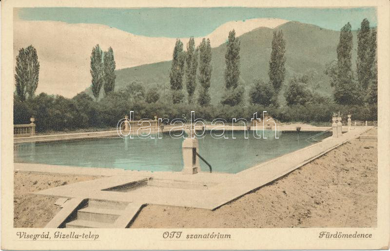 Visegrád, Gizella telep, OTI szanatórium, fürdőmedence https://www.darabanth.com/de/236-Fernauktion/236.0/Ansichtskarten/Ungarn~32/Visegrad-Gizella-telep-OTI-szanatorium-furdomedence~II1087005