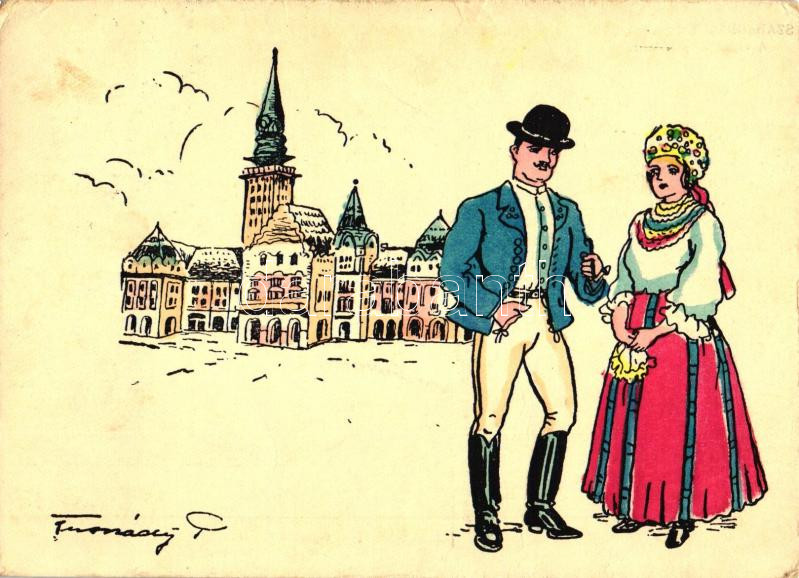 Beschreibung: Szabadka, Városháza, folklór; Délvidéki Egyetemi és Főiskolai Hallgatók Egyesülete / statue s: Tusnády (EK)