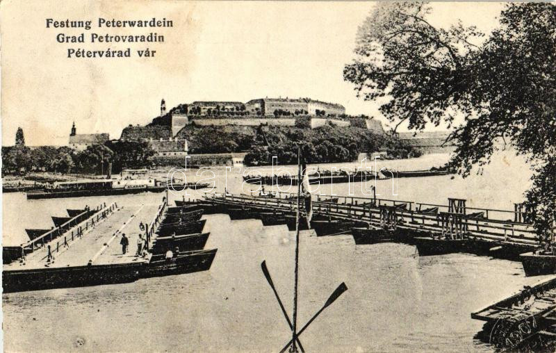 Beschreibung: Újvidék, Pétervárad, SS Aladár, ponton híd / steamship, bridge (fl)