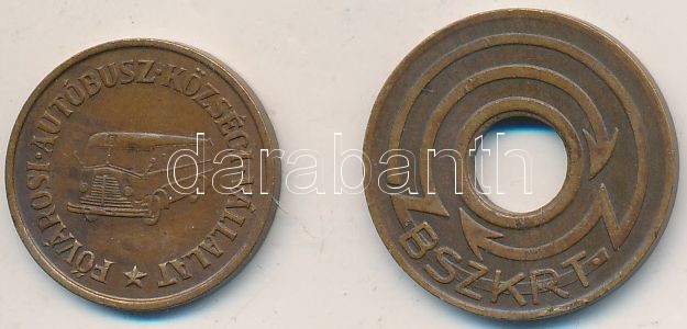 Beschreibung: ~1930. 50F Cu "B.SZ.K.R.T (Budapest Székesfővárosi Közlekedési Részvénytársaság)" bárca + 1946-1968. 5Ft "FAKV (Fővárosi Autóbusz Községi Vállalat)" Cu közlekedési bárca T:2-,2