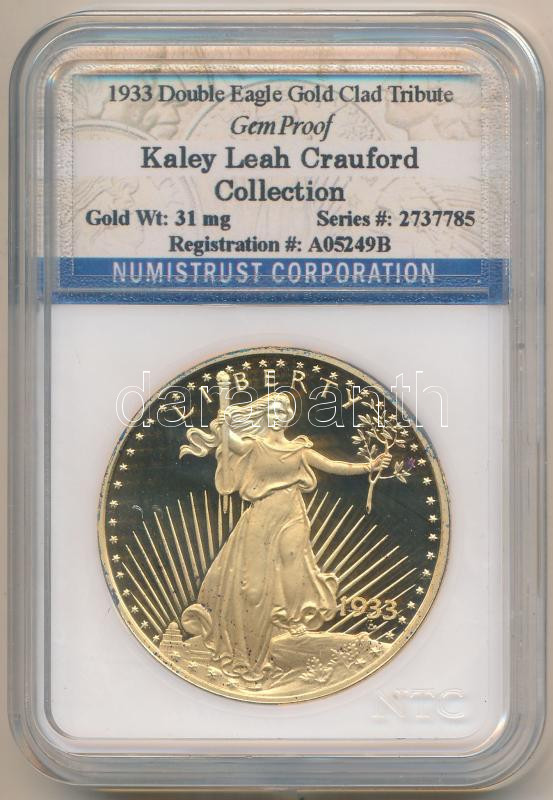 Amerikai Egyesült Államok 1933. 20$ "Dupla Sas" jelzett replika dísztokban tanúsítvánnyal T:PP