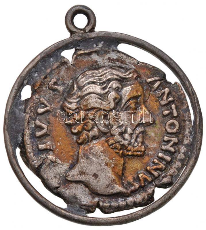 Római Birodalom / Róma / Marcus Aurelius által veretett, Antoninus Pius emlékére 161. Denár Ag fém keretbe foglalva füllel T:3 ph., ki.