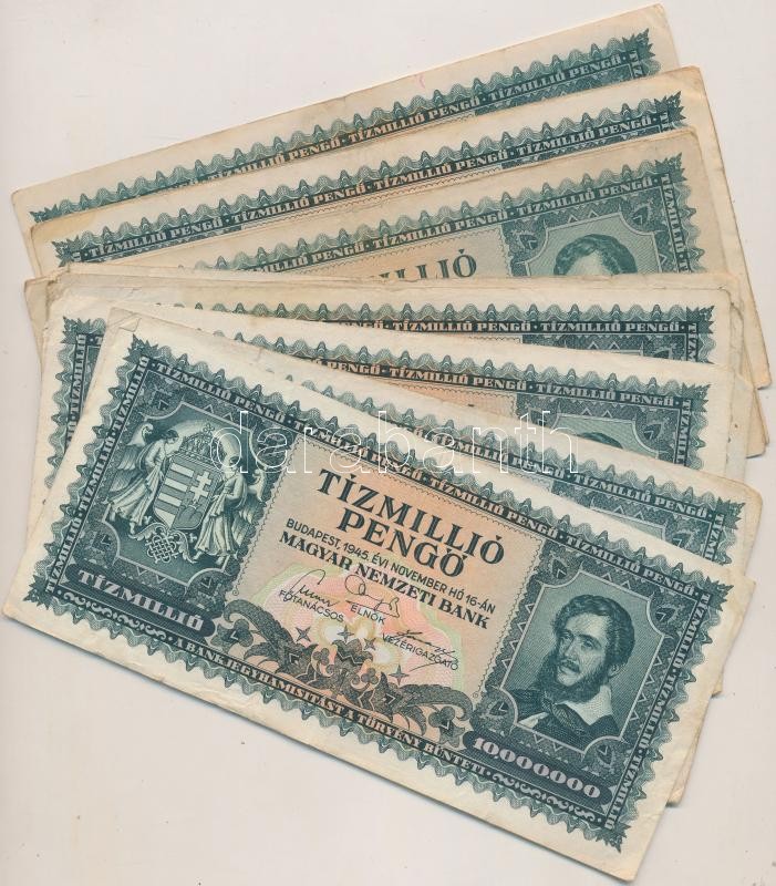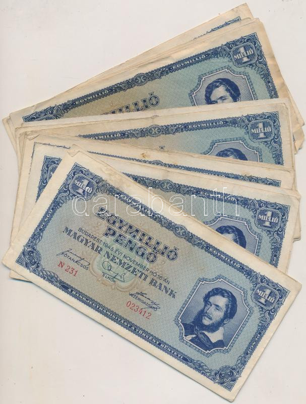 1945. 1.000.000P (20x) + 10.000.000P (20x) T:vegyes https://www.darabanth.com/de/236-Fernauktion/236.0/Numismatik/Ungarische-Banknoten~200007/1945-1000000P-20x-plus-10000000P-20x-Tvegyes~II1083445