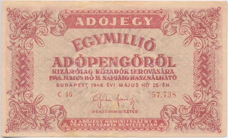 1946. 1.000.000AP az előlap átnyomódásával keletkezett hátlapi tévnyom... https://www.darabanth.com/de/236-Fernauktion/236.0/Numismatik/Ungarische-Banknoten~200007/1946-1000000AP-az-elolap-atnyomodasaval-keletkezett-hatlapi-tevnyomattal-TIII~II1082326