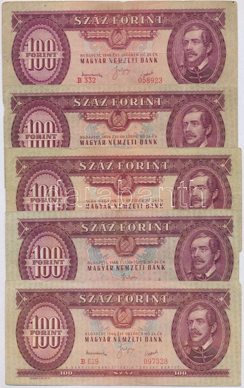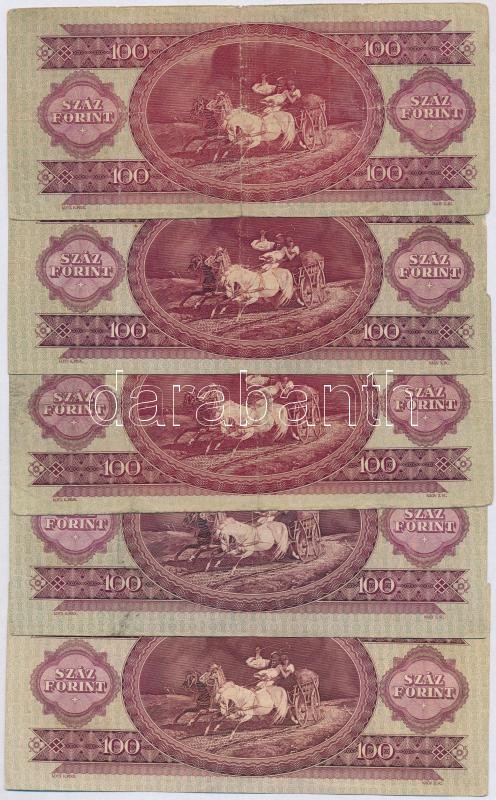 1949. 100Ft (5x) T:III,III- https://www.darabanth.com/de/236-Fernauktion/236.0/Numismatik/Ungarische-Banknoten~200007/1949-100Ft-5x-TIII-III-~II1082342
