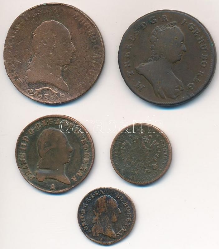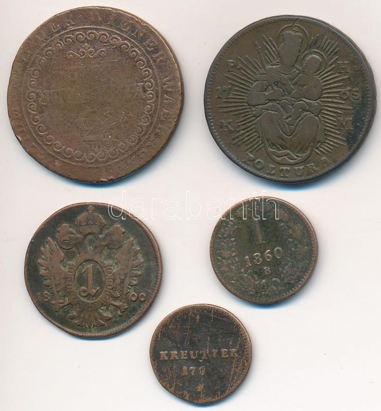1765-1860. 5db-os krajcár tétel, közte magyar és osztrák verdejelűek i... https://www.darabanth.com/de/236-Fernauktion/236.0/Numismatik/Ungarische-Munzen~200008/1765-1860-5db-os-krajcar-tetel-kozte-magyar-es-osztrak-verdejeluek-is-T2-3~II1081407