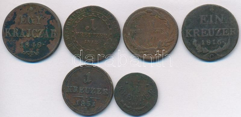 Beschreibung: 1812. 1kr Cu + 1816S 1/4kr Cu + 1816G 1kr Cu + 1848. 1kr Cu + 1851B 1kr Cu + Ausztria 1781A 1kr Cu "II. József" T:vegyes