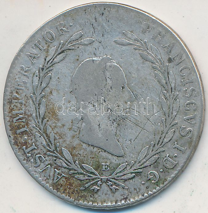 1827E 20kr Ag "I. Ferenc" T:2-,3 https://www.darabanth.com/de/236-Fernauktion/236.0/Numismatik/Ungarische-Munzen~200008/1827E-20kr-Ag-I-Ferenc-T2-3~II1082177