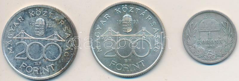 Beschreibung: 1893. 1K Ag "Ferenc József" + 1992-1993. 200Ft Ag "MNB" (2x) T:3,2 oxidáció