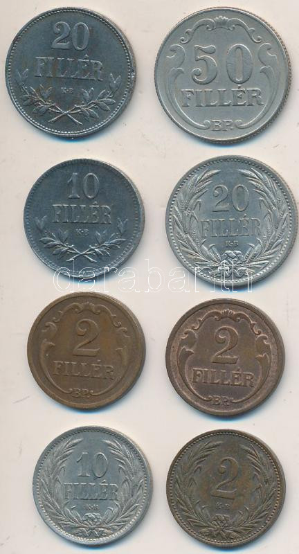 1909-1940. 2f-50f (8xklf) T:2,2- https://www.darabanth.com/de/236-Fernauktion/236.0/Numismatik/Ungarische-Munzen~200008/1909-1940-2f-50f-8xklf-T2-2-~II1086260