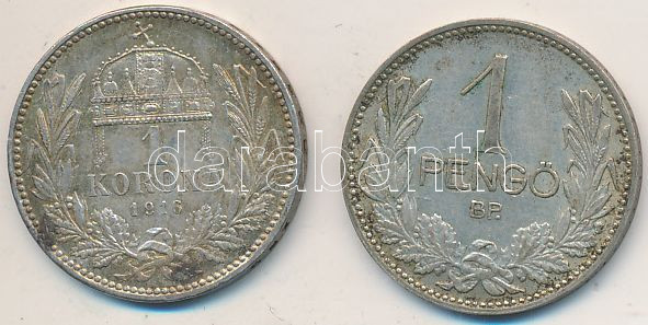 1916. 1K Ag "Ferenc József" + 1938. 1P Ag T:2 https://www.darabanth.com/de/236-Fernauktion/236.0/Numismatik/Ungarische-Munzen~200008/1916-1K-Ag-Ferenc-Jozsef-plus-1938-1P-Ag-T2~II1087622
