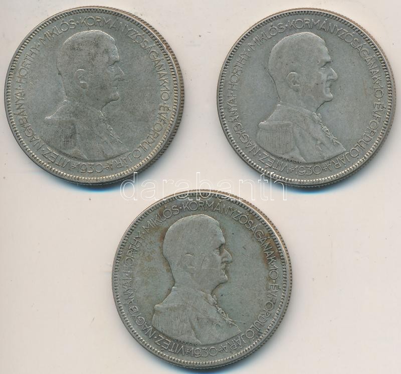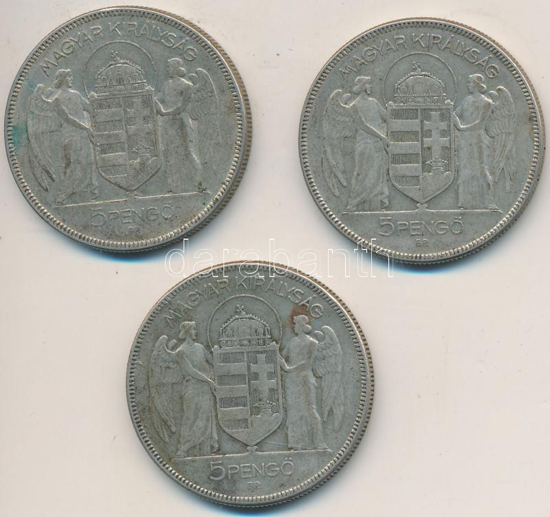 Beschreibung: 1930. 5P Ag "Horthy jobbra" (3x) T:3