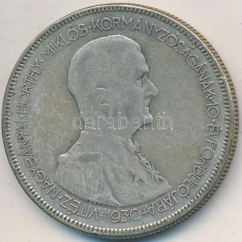 1930. 5P Ag "Horthy jobbra" T:3