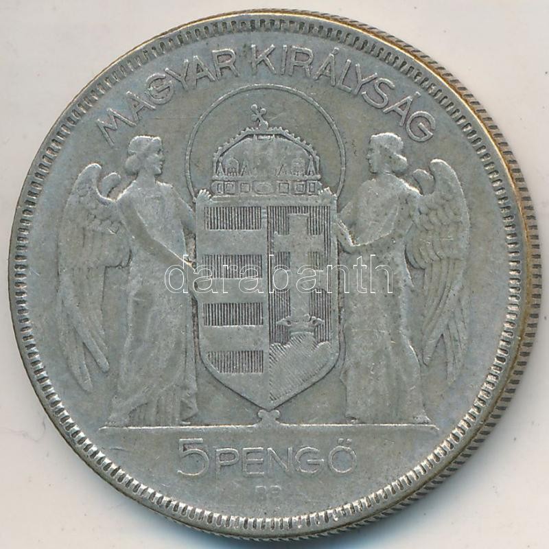 Beschreibung: 1930. 5P Ag "Horthy jobbra" T:3