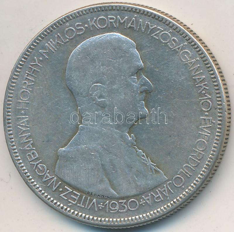 1930. 5P Ag "Horthy jobbra" T:3