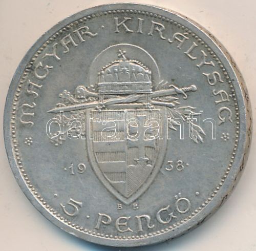 Adamo P8.1 https://www.darabanth.com/de/236-Fernauktion/236.0/Numismatik/Ungarische-Munzen~200008/1938-5P-Ag-Szent-Istvan-T2--3Cbr3EAdamo-P81~II1087603