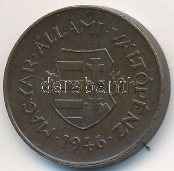 1946. 2f tombak, technológiai hibás előlap T:2 https://www.darabanth.com/de/236-Fernauktion/236.0/Numismatik/Ungarische-Munzen~200008/1946-2f-tombak-technologiai-hibas-elolap-T2~II1081444