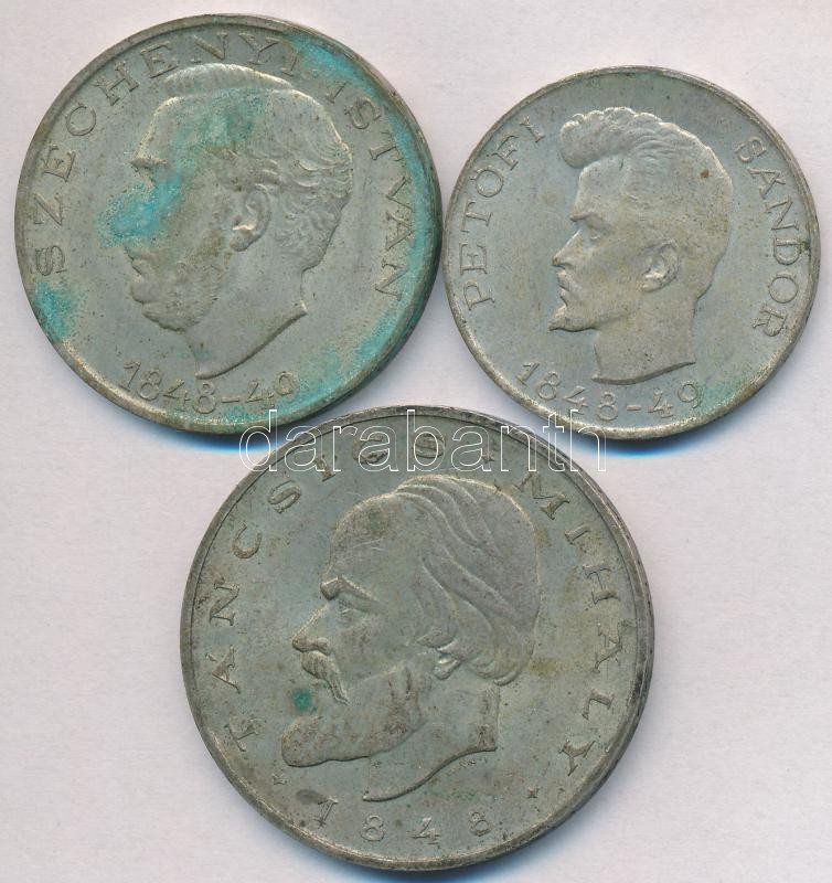 Beschreibung: 1948. 5Ft Ag "Petőfi" + 10Ft Ag "Széchenyi" + 20Ft Ag "Táncsics" "Szabadságharc" sor T:2,2- patina
