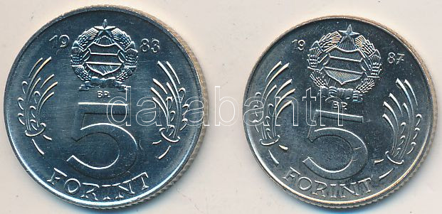 1983-1987. 5Ft (2x) T:1,1- https://www.darabanth.com/de/236-Fernauktion/236.0/Numismatik/Ungarische-Munzen~200008/1983-1987-5Ft-2x-T1-1--3Cbr3E~II1081005