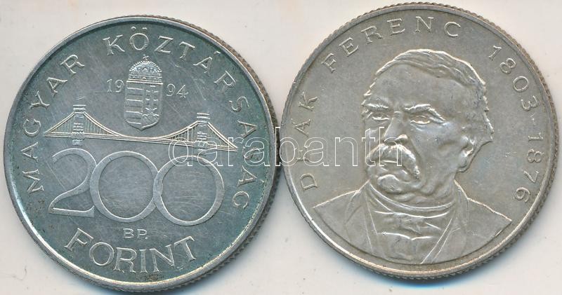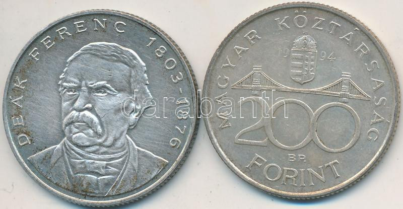 1994. 200Ft Ag "Deák" (2x) T:2,2- https://www.darabanth.com/de/236-Fernauktion/236.0/Numismatik/Ungarische-Munzen~200008/1994-200Ft-Ag-Deak-2x-T2-2-~II1082338