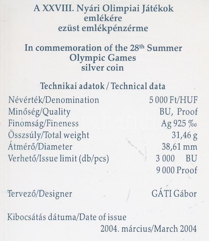 2004. 5000Ft Ag "Nyári olimpia-Athén" T:PP Tanúsítvánnyal https://www.darabanth.com/de/236-Fernauktion/236.0/Numismatik/Ungarische-Munzen~200008/2004-5000Ft-Ag-Nyari-olimpia-Athen-TPP-Tanusitvannyal~II1083233