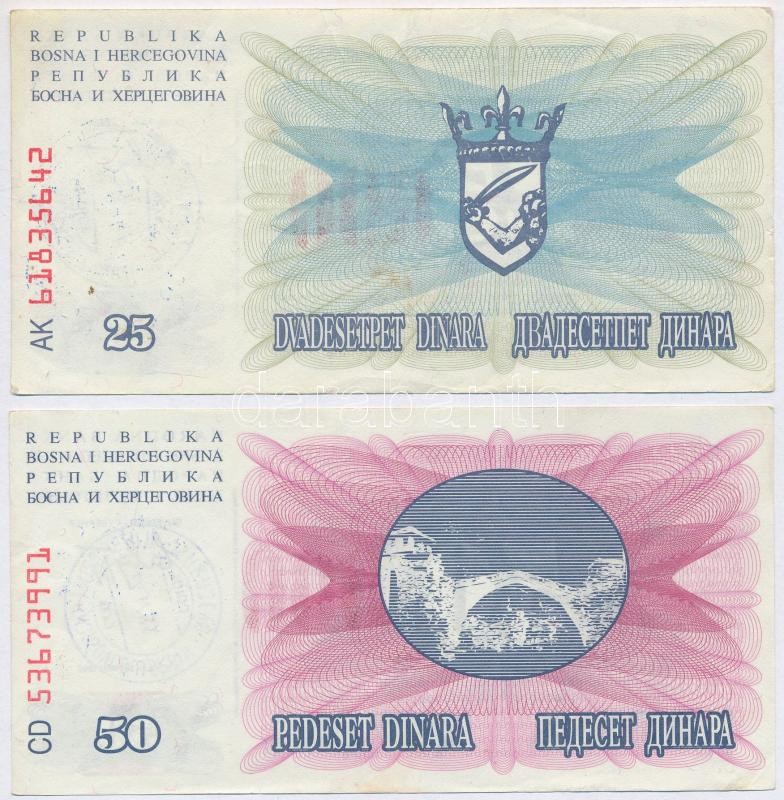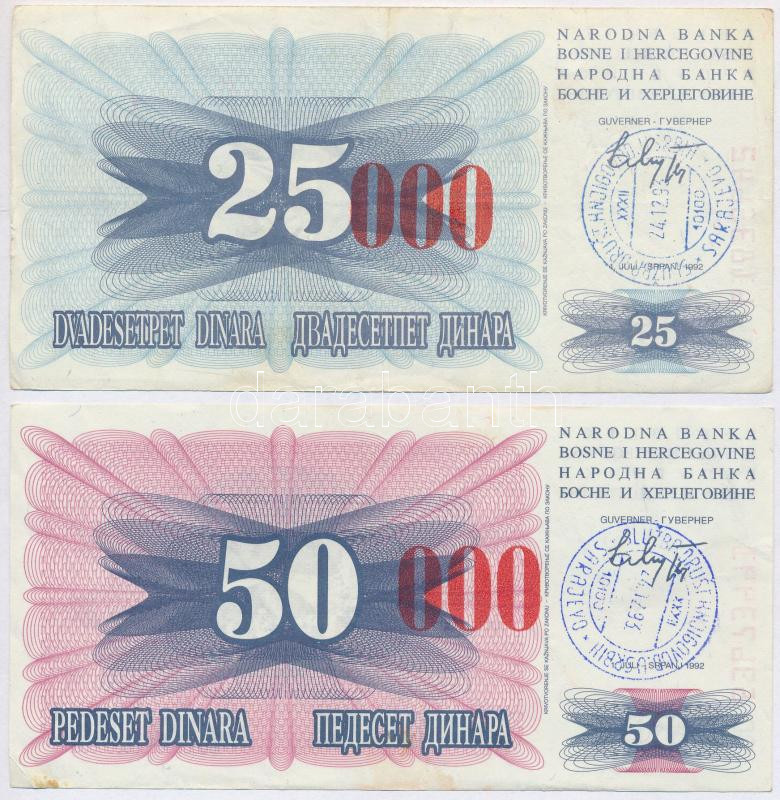 Bosnia-Herzegovina 1992. 25.000 Dinara + 50.000 Dinara C:VF,F