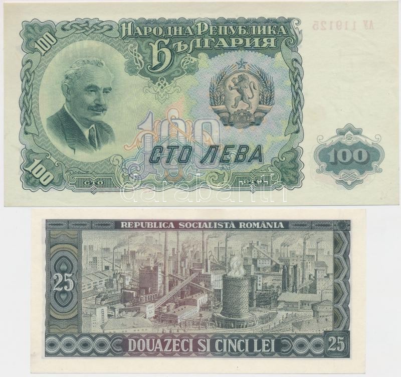 Bulgaria 1951... https://www.darabanth.com/de/236-Fernauktion/236.0/Numismatik/Weltweit-Banknoten~200011/Buglaria-1951-100L-plus-Romania-1966-25L-TI-I-hajtatlan-3Cbr3EBulgaria-1951-100-Leva-plus-Romania-19~II1083301