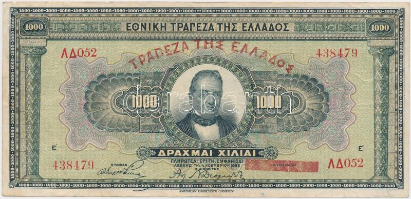 Greece 1926. 1000 Drachmai C:F https://www.darabanth.com/de/236-Fernauktion/236.0/Numismatik/Weltweit-Banknoten~200011/Gorogorszag-1926-1000Dr-TIII---Greece-1926-1000-Drachmai-CF~II1065372