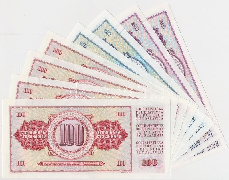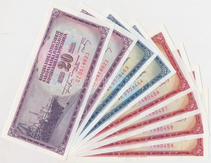 Jugoszlávia 1974. 20D (2x) sorszámkövetők + 1978. 50D (2x) sorszámköve... https://www.darabanth.com/de/236-Fernauktion/236.0/Numismatik/Weltweit-Banknoten~200011/Jugoszlavia-1974-20D-2x-sorszamkovetok-plus-1978-50D-2x-sorszamkovetok-plus-1981-100D-4x-s~II1088097